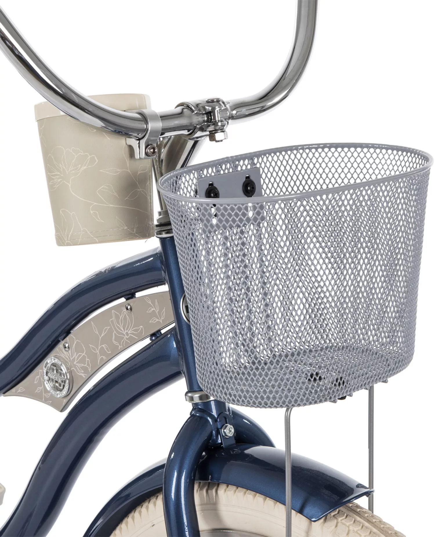 - Includes a beverage holder and front mesh basket for ample storage while you ride