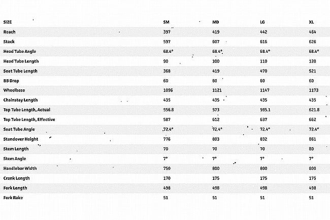 • Modern trail standards: dropper post compatibility, 44mm headtube, Gnot-Boost rear spacing, thru-axles, suspension corrected fork